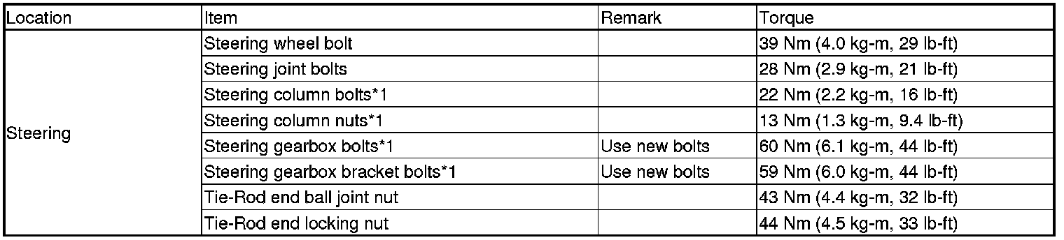 *Refer to the S/M section for the bolts/nuts not indicated here.