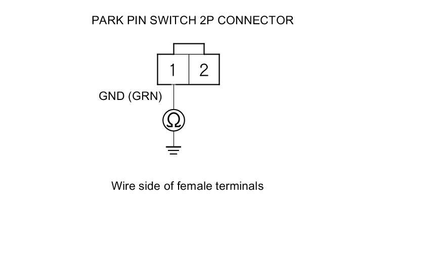 17. Check for continuity between park pin switch 2P connector terminal No. 1 and body ground.