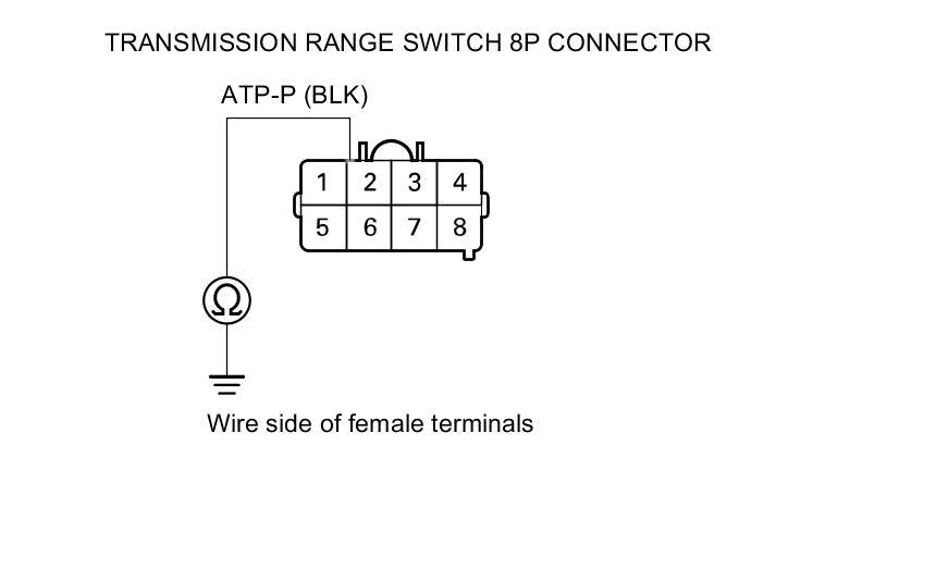 22. Check for continuity between transmission range switch 8P connector terminal No. 2 and body ground.