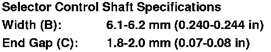 6. If the measurement of the selector control shaft end is within the standard, replace the transmission range switch Service and Repair. If the measurement is out of the standard, repair the selector control shaft end, then install the transmission range switch Service and Repair, and recheck the transmission range switch continuity.
