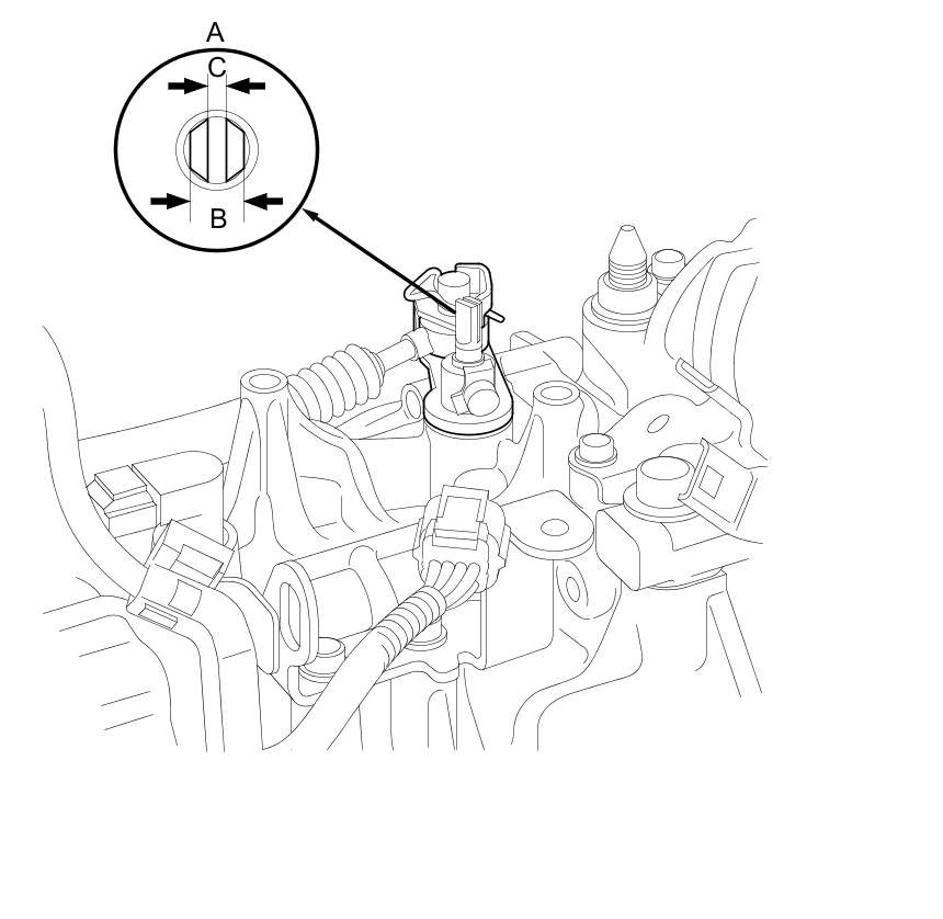 5. Remove the transmission range switch Service and Repair, and check the end of the selector control shaft (A).