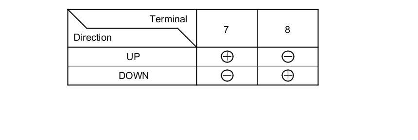 2. Test the motor in each direction by connecting battery power and ground to the front passenger's power window switch 8P connector according to the table.