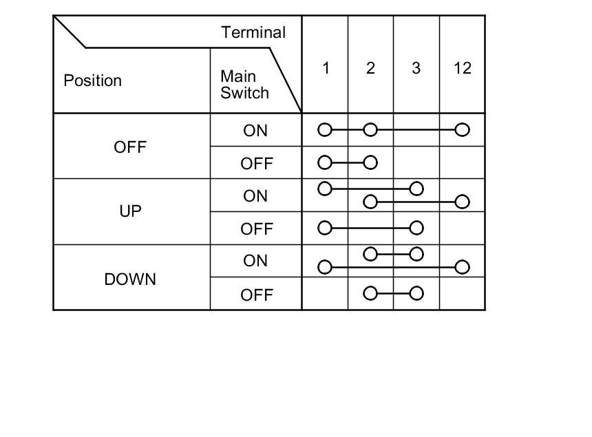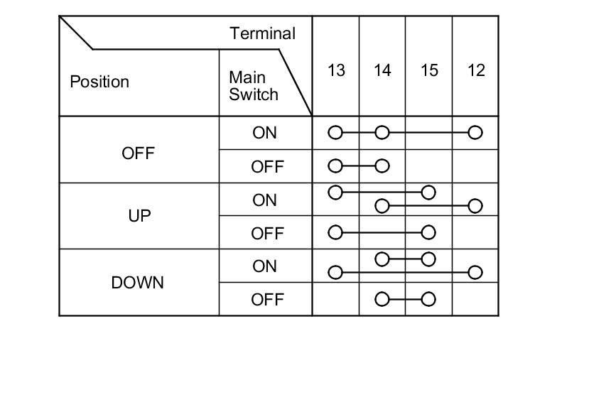 3. Check for continuity between the terminals in each position according to the tables.