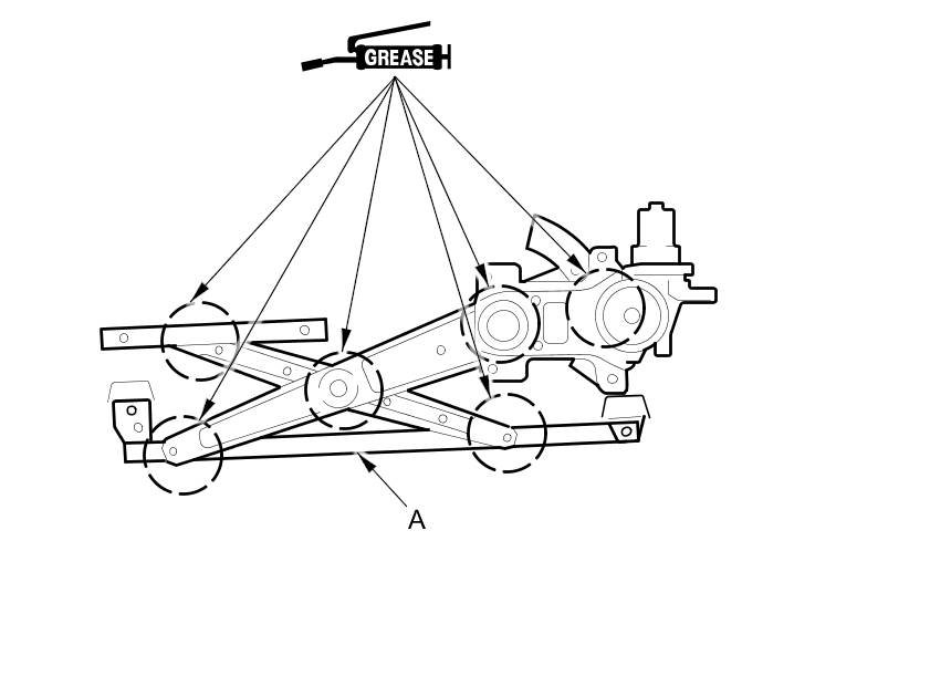 10. Apply multipurpose grease to all the sliding surfaces of the regulator (A) where shown.