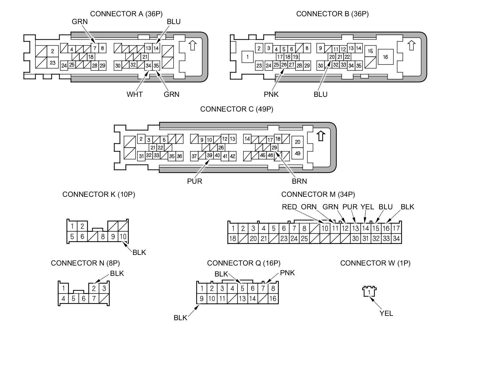 3. Disconnect under-dash fuse/relay box connectors A, B, C, K, M, N, Q, and W.
