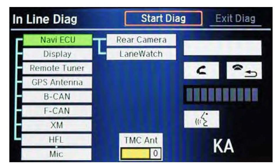 ^ Press and hold the MENU, NAVI, and BACK buttons at the same time until the Select Diagnosis Items screen comes up. Then release the buttons.