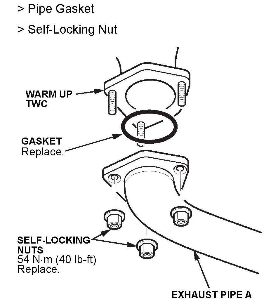 6. Pull down exhaust pipe A to access the exhaust pipe A gasket.
