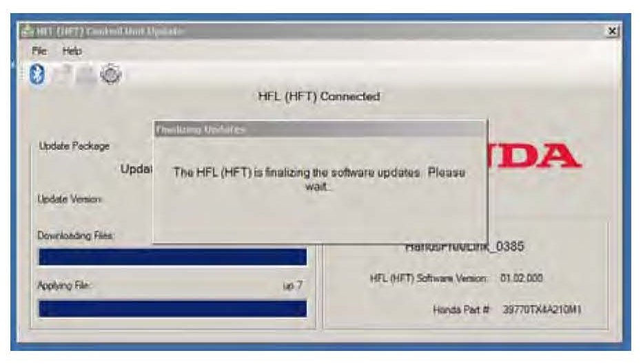 16. In the HFL update tool, a pop-up window alerts you when the reflash process is finalizing, and then another pop-up informs you that the reflash process has completed.