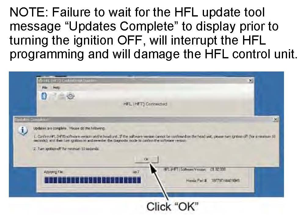17. In the HFL update tool, click OK when the pop-up window indicates the reflash process is complete.