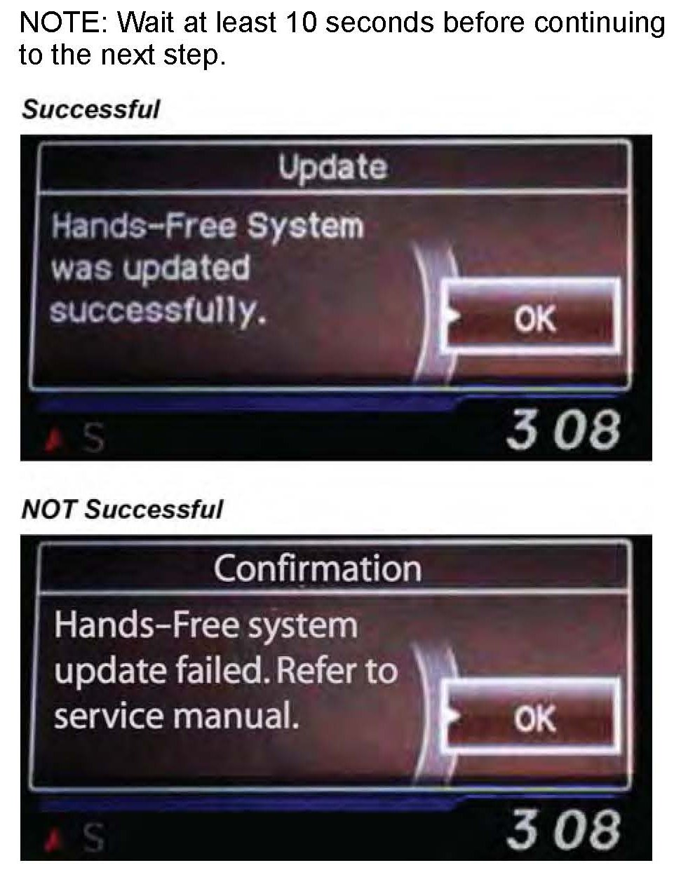 ^ If successful, an update screen and subsequent updated successfully" messages are displayed. Turn the ignition OFF. Go to step 20.