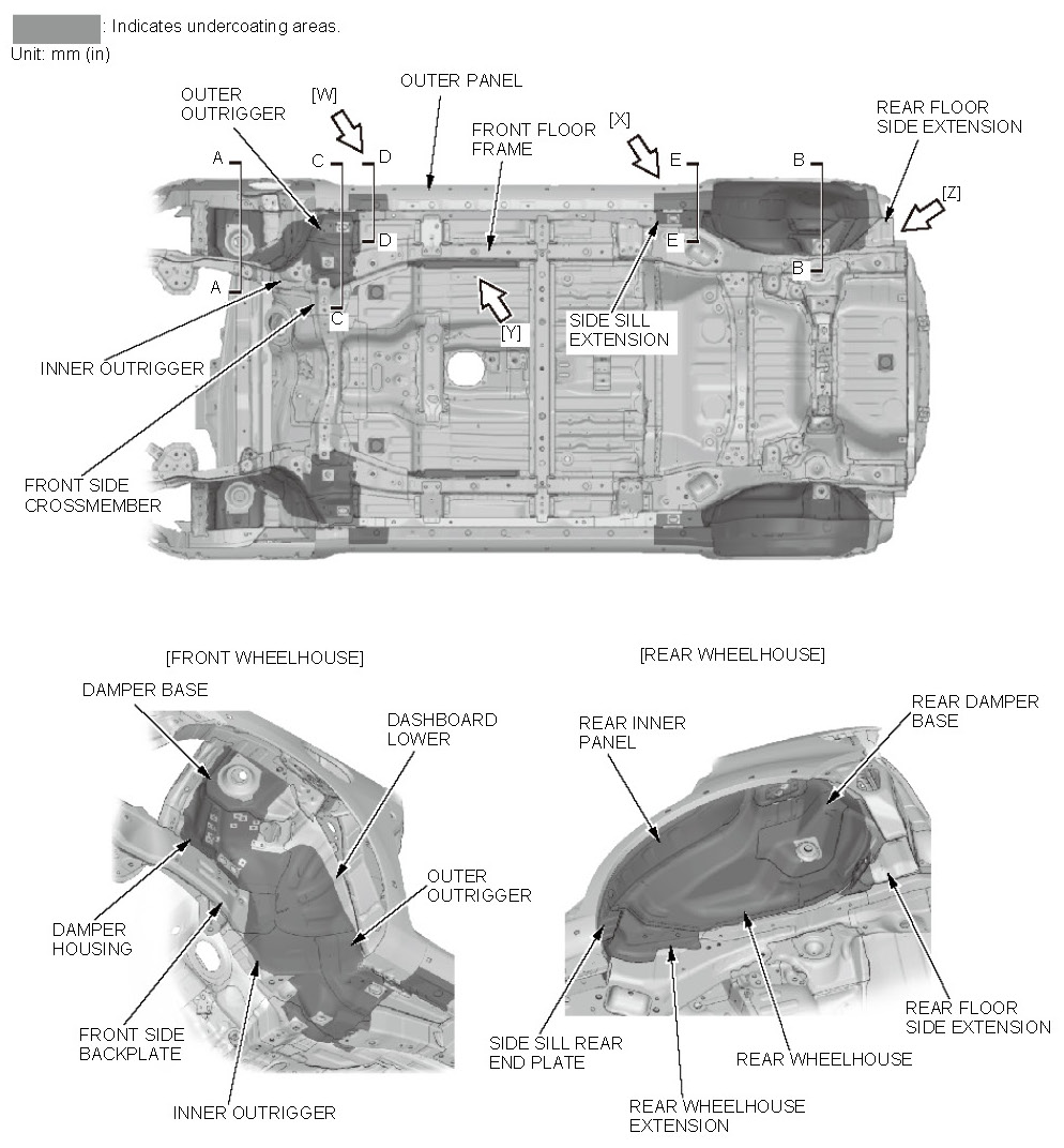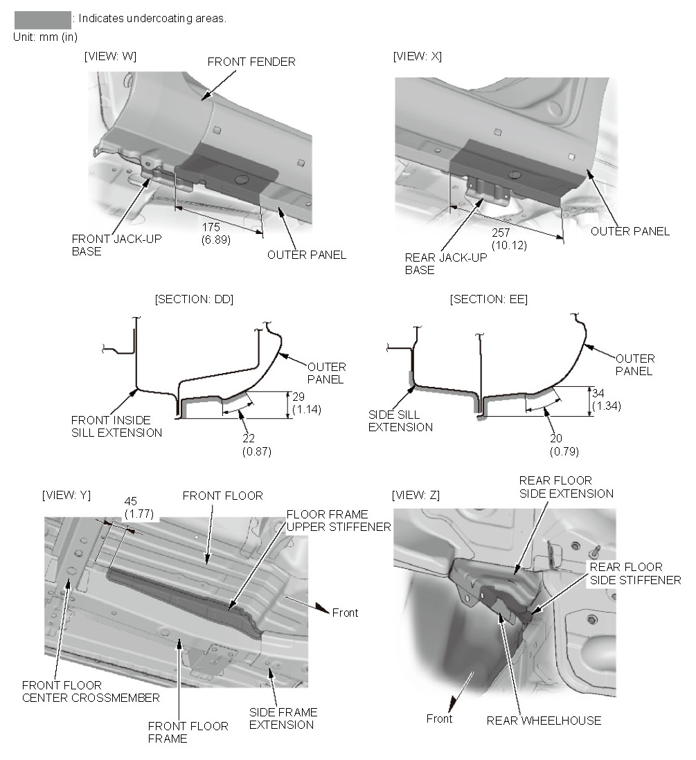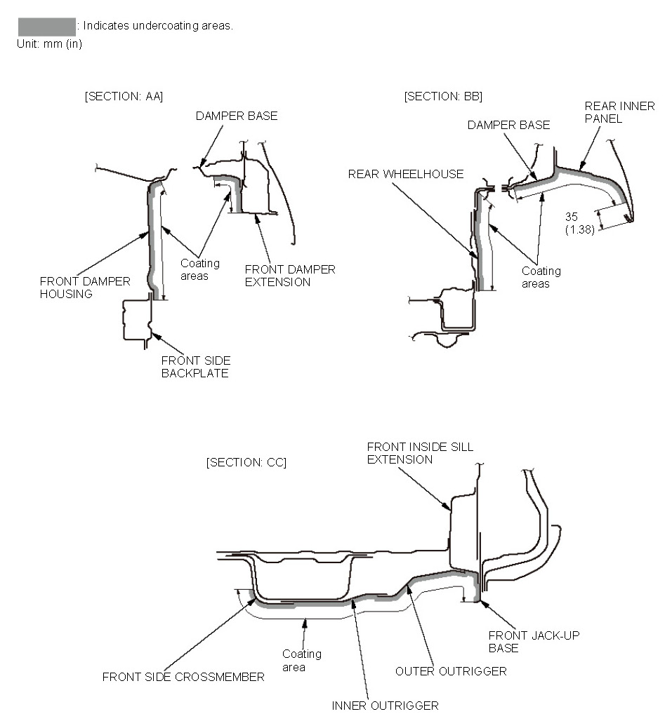 - Front wheelhouse and rear wheelhouse coating thickness 0.5 mm (0.020 in).