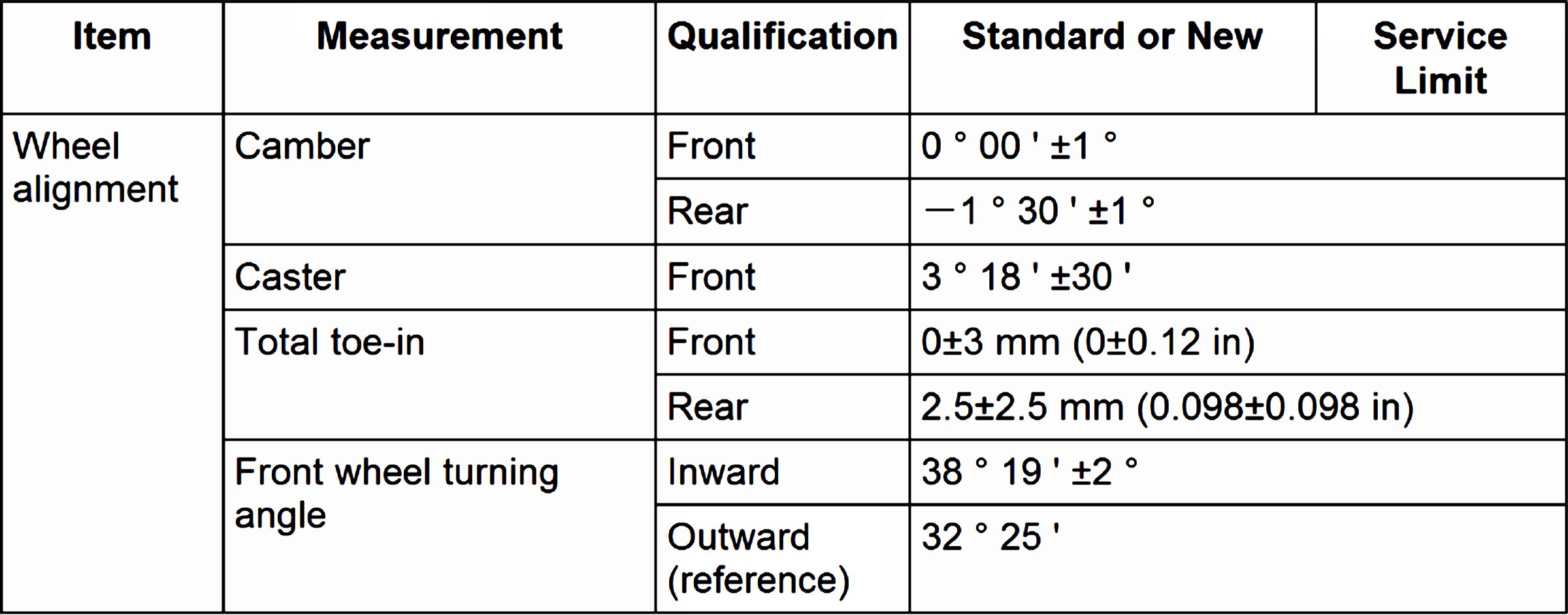 Wheel Alignment Specifications