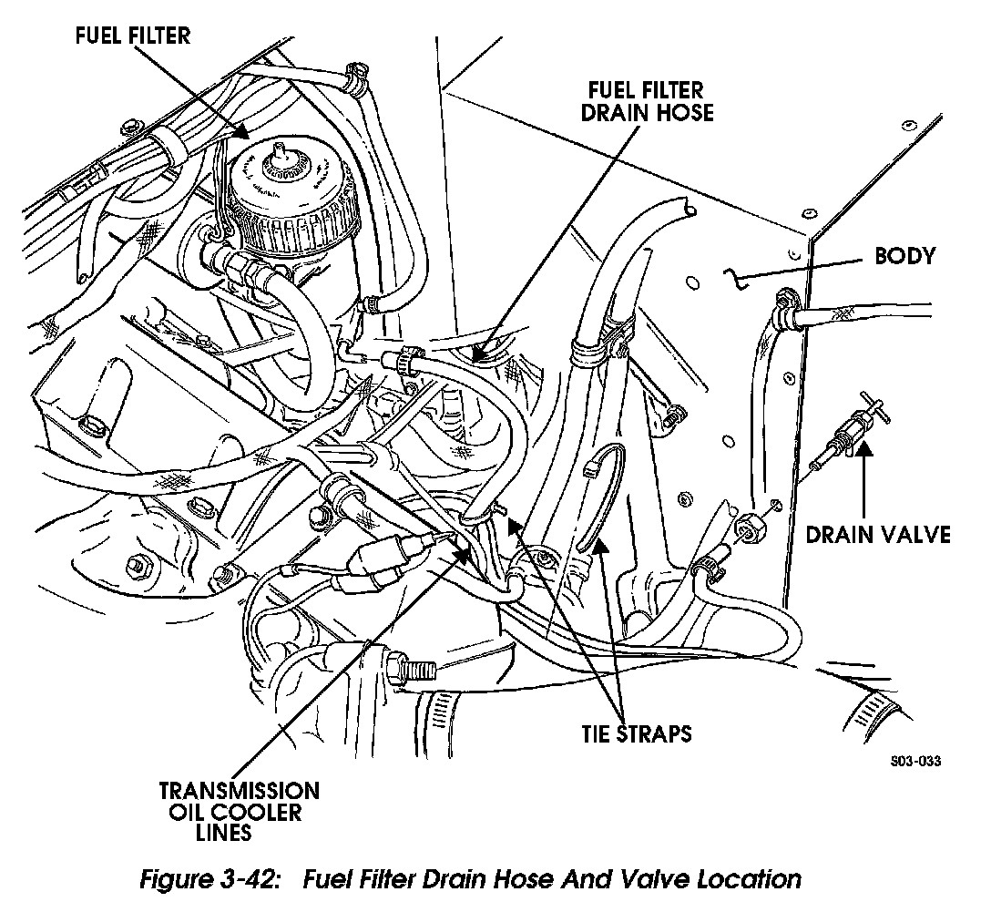 Figure 3-42: Fuel Filter Drain Hose And Valve Location: