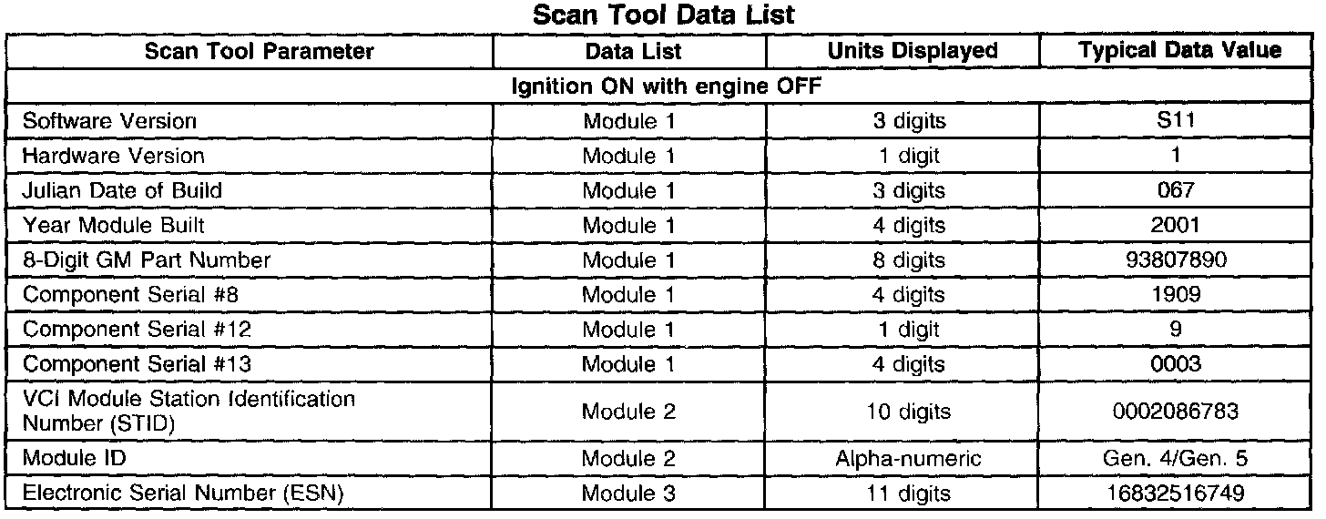 Scan Tool Data List