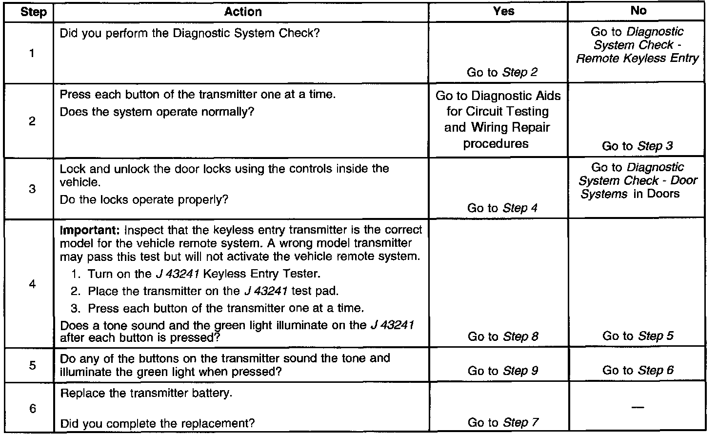 Keyless Entry System Inoperative