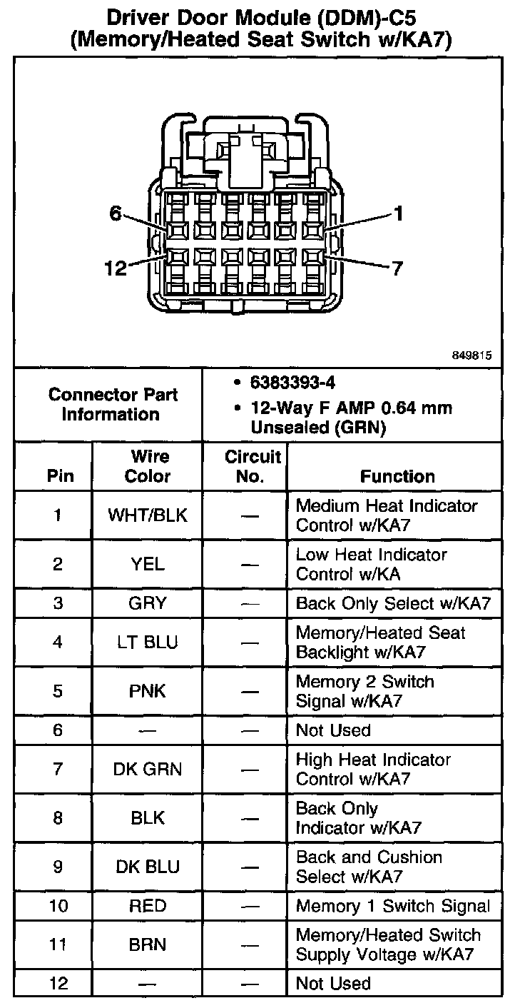 Driver Door Module (DDM) - C5 (Memory/Heated Seat Switch With RPO Code KA7):