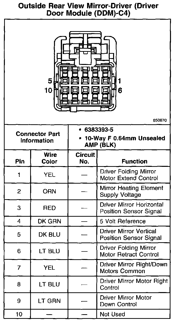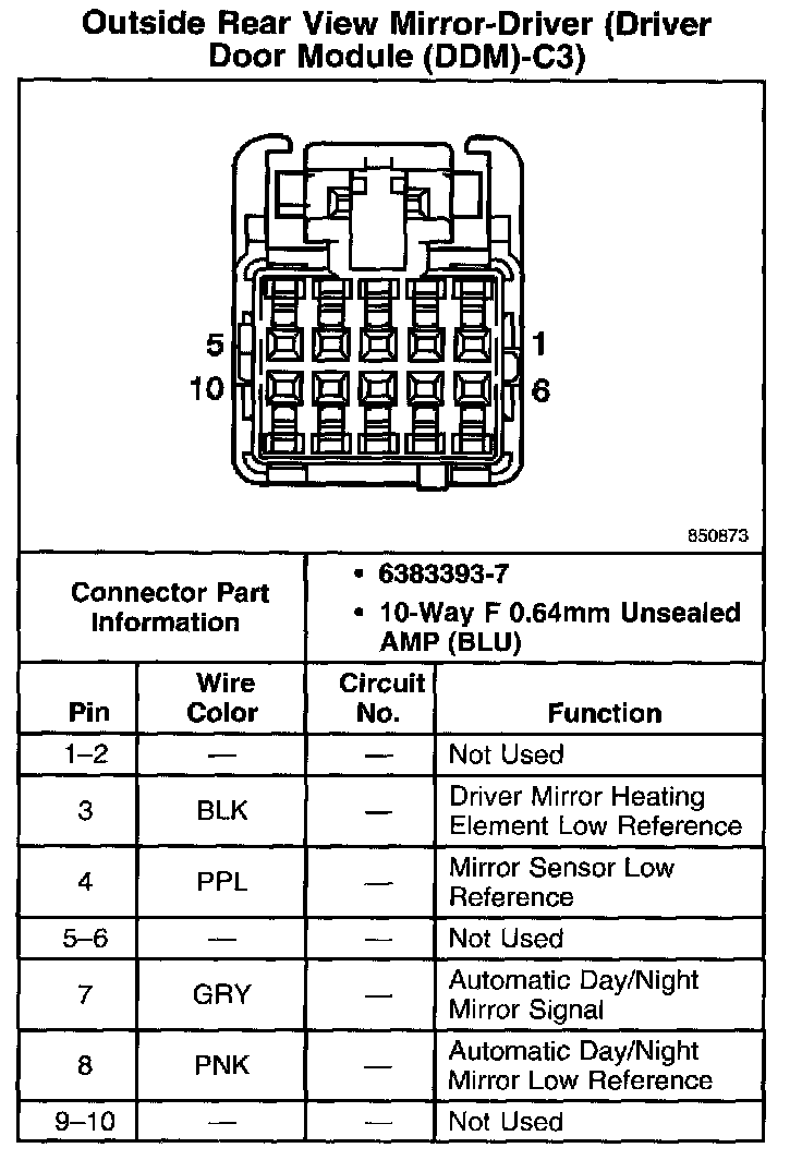 Outside Rear View Mirror - Driver (Driver Door Module (DDM) - C3):