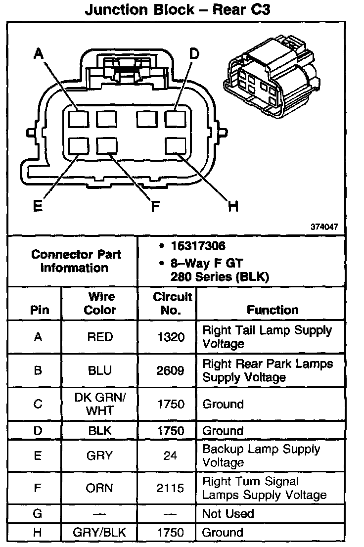 Tail Lamp Assembly - Right (Junction Block - Rear - C3) Part 2: