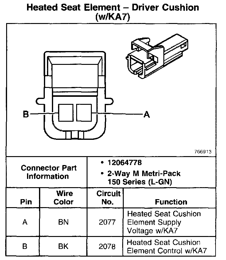Heated Seat Element - Driver Cushion (With RPO Code KA7):
