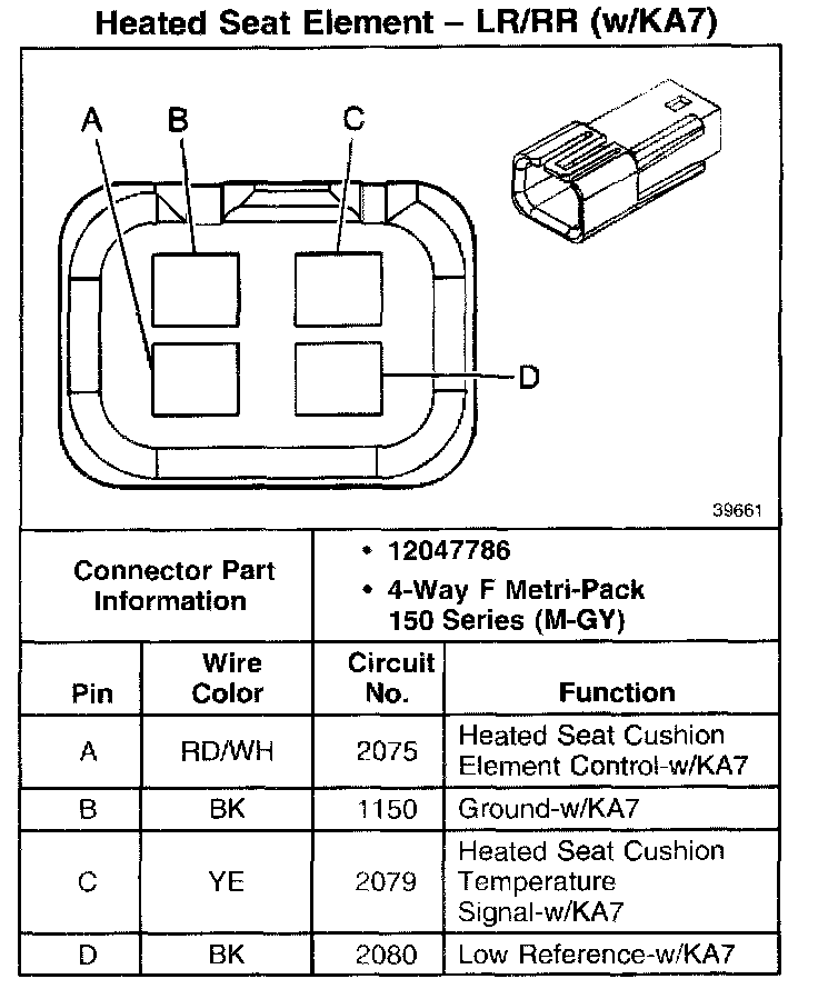 Heated Seat Element - LR/RR (With RPO Code KA7):