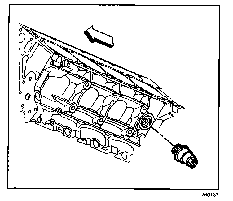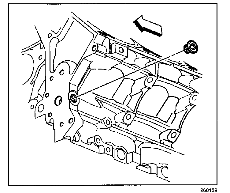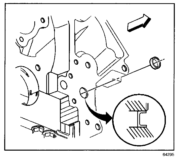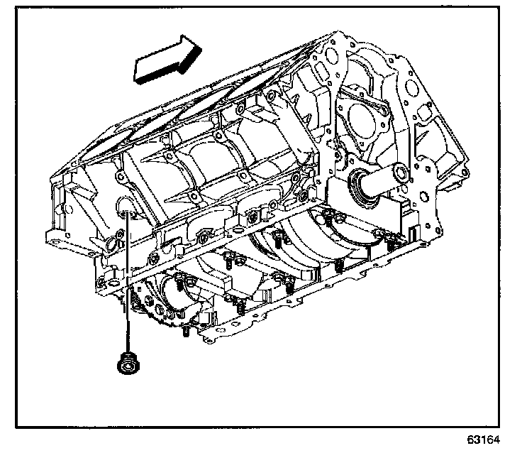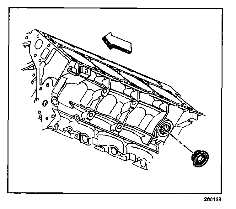 11. Inspect the engine block rear oil gallery plug and O-ring seal. If the O-ring seal on the plug is not cut or damaged, the rear oil gallery plug may be used again.
