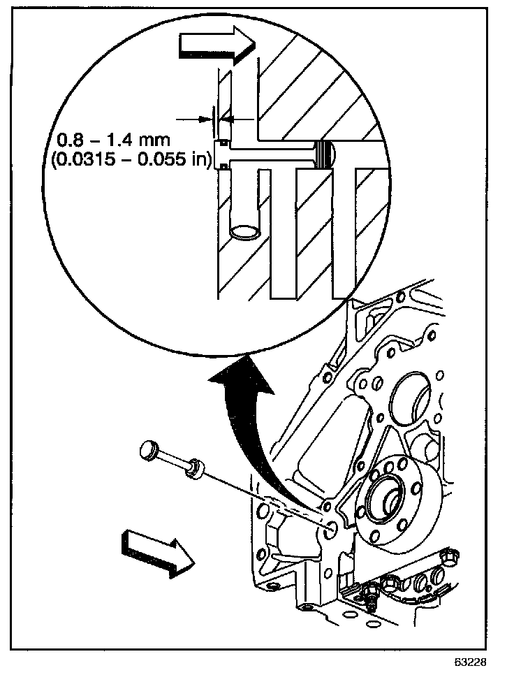 13. Install the block rear oil gallery plug into the oil gallery bore. A properly installed block plug will protrude 0.8-1.4 mm (0.0315-0.055 in) beyond the rear face of the block.