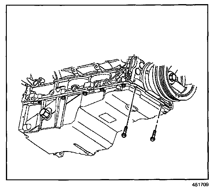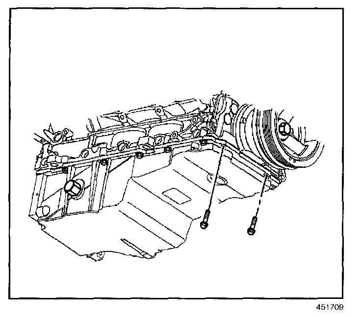 4. Install the oil pan-to-front cover bolts until snug. Do not over tighten.