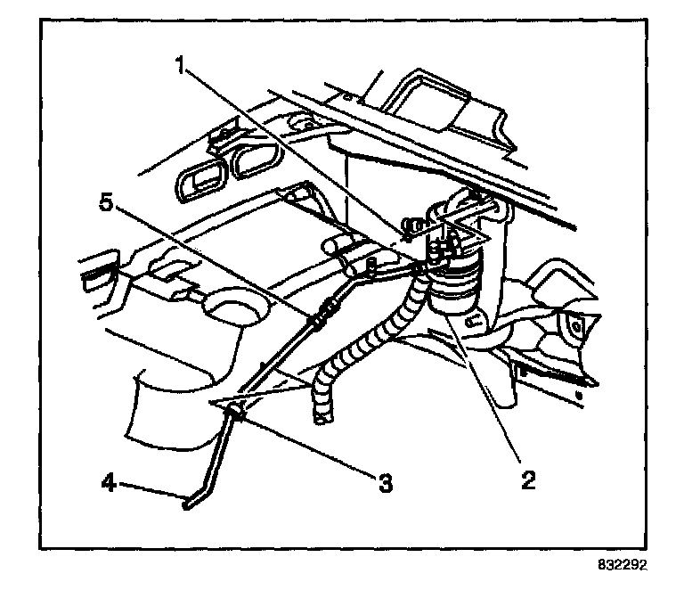 4. Remove the A/C refrigerant filter (5) from the evaporator tube (4).