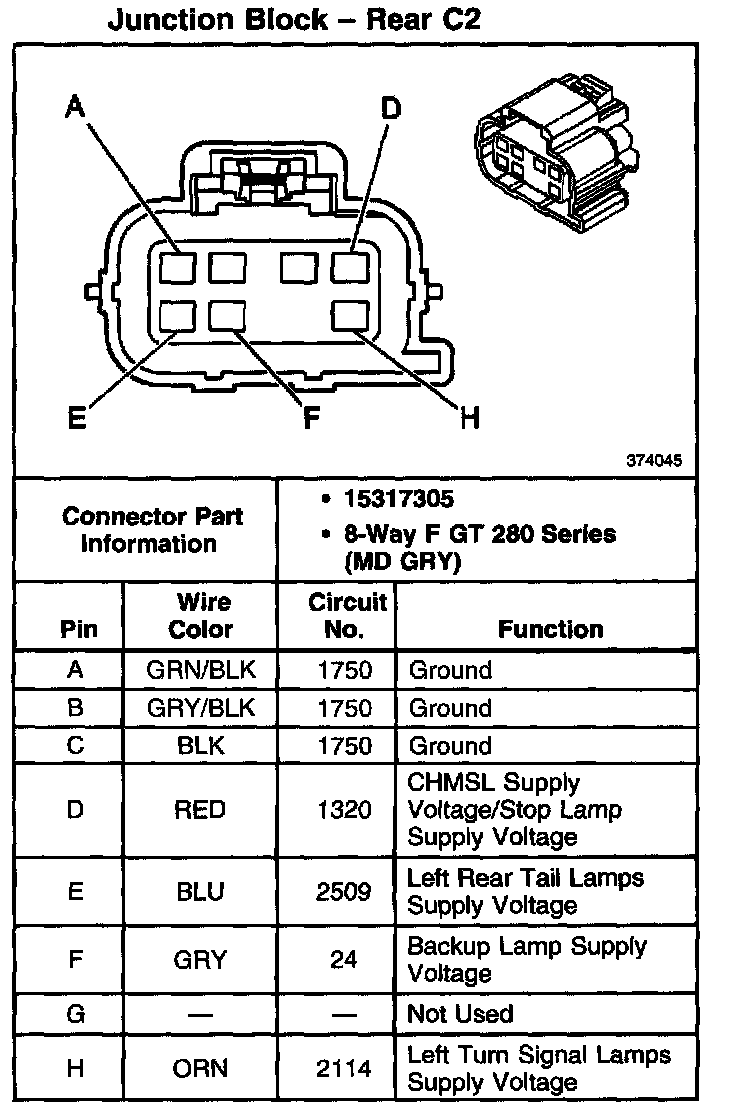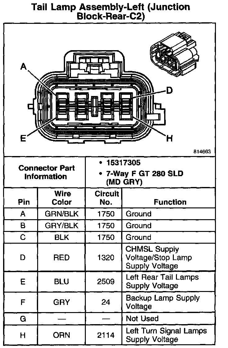 Tail Lamp Assembly - Left (Junction Block - Rear - C2):