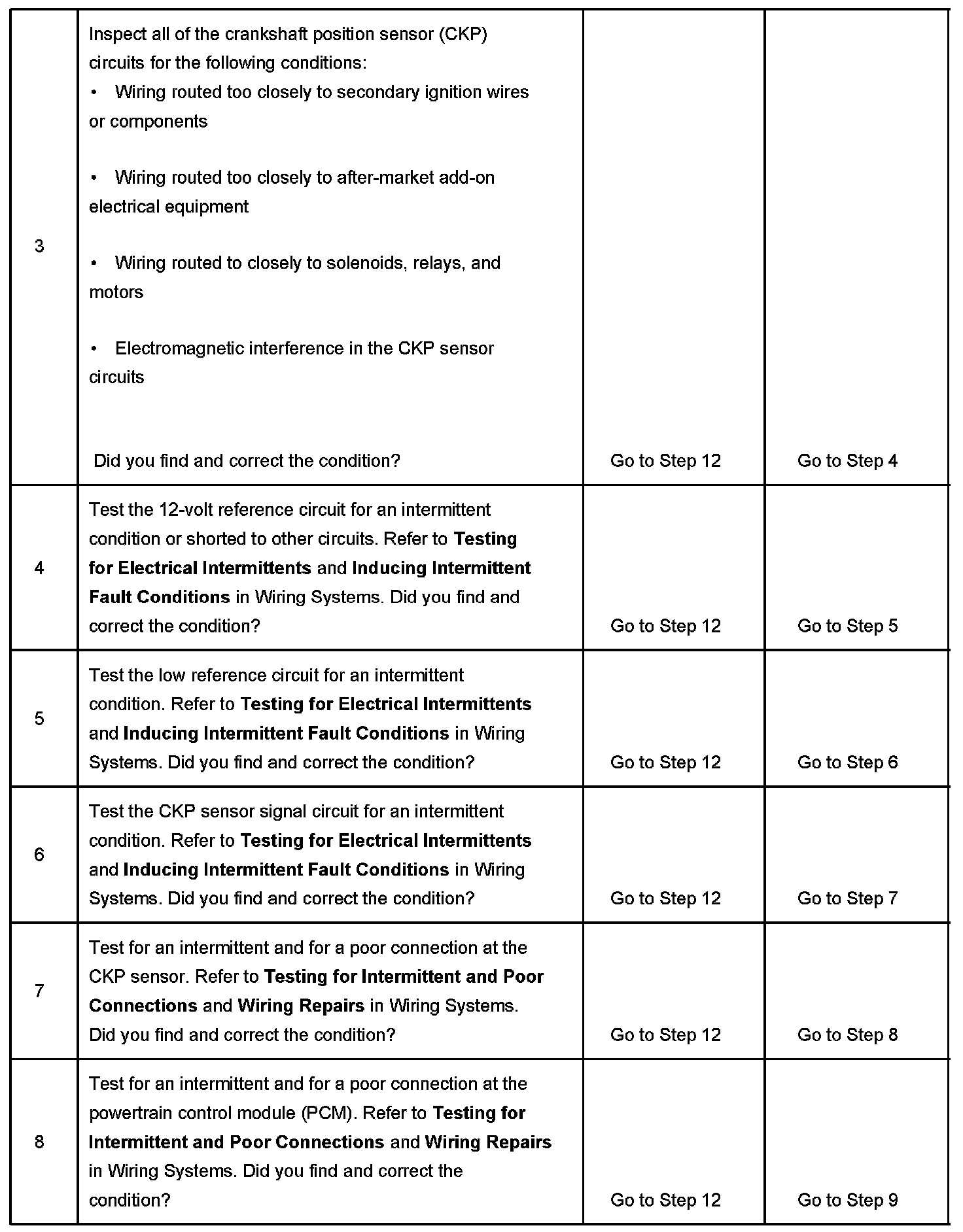 The crankshaft position (CKP) sensor signal indicates the crankshaft speed and position. The CKP sensor circuits are connected directly to the powertrain control module (PCM) and consists of the following circuits: