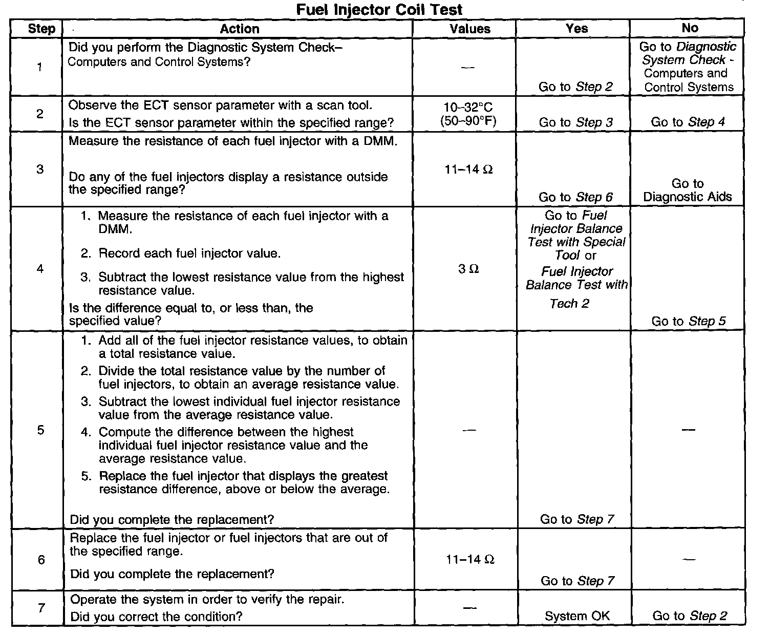 - Perform the fuel injector coil test within the conditions of the customers concern. A fuel injector condition may only be apparent at a certain temperature, or under certain conditions.