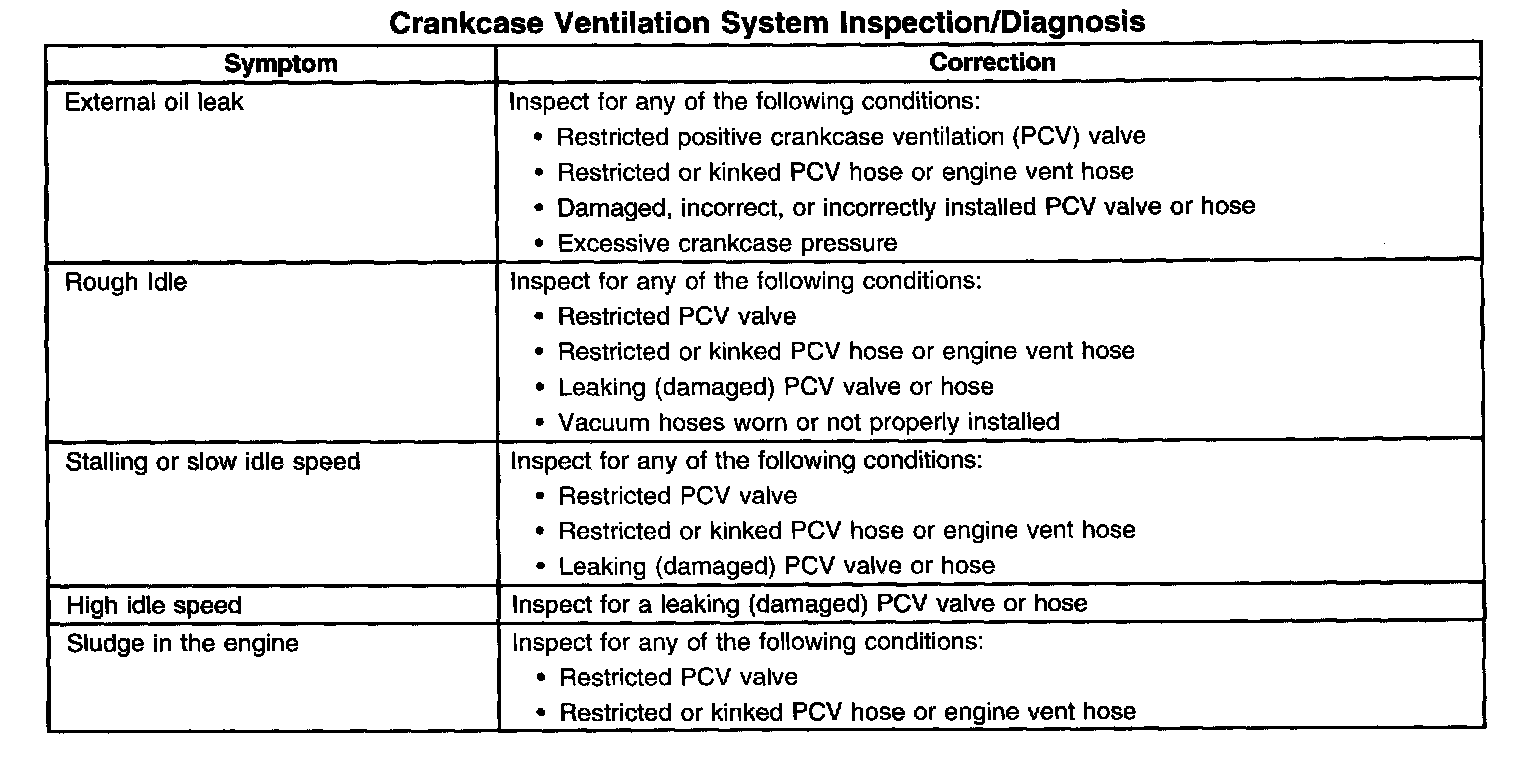 Crankcase Ventilation System Inspection/Diagnosis: