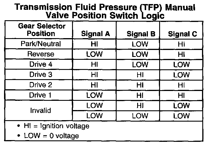 Transmission Fluid Pressure (TFP) Manual Valve Position Switch Logic