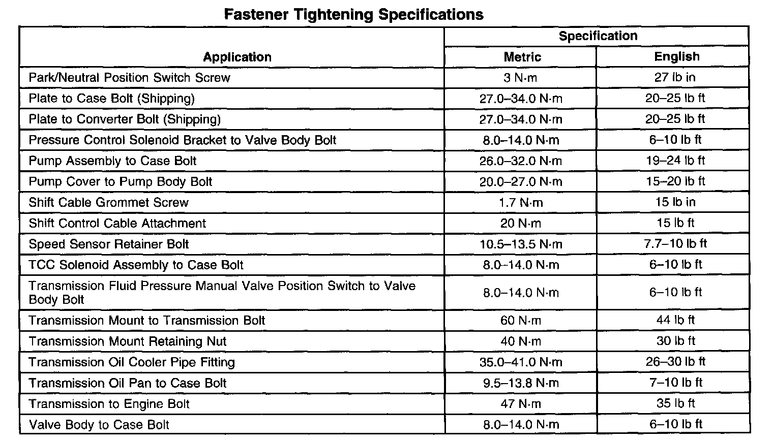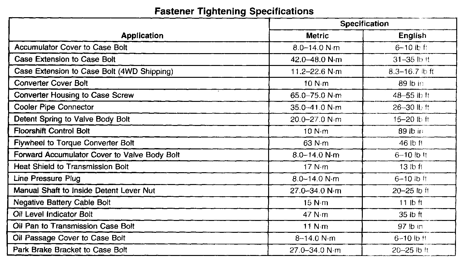 Fastener Tightening Specifications