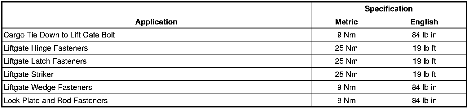 Fastener Tightening Specifications