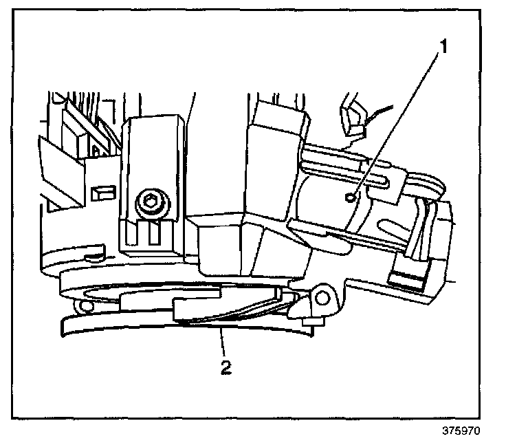 5. Insert the tip of an awl into the access hole (1) of the ignition lock cylinder.