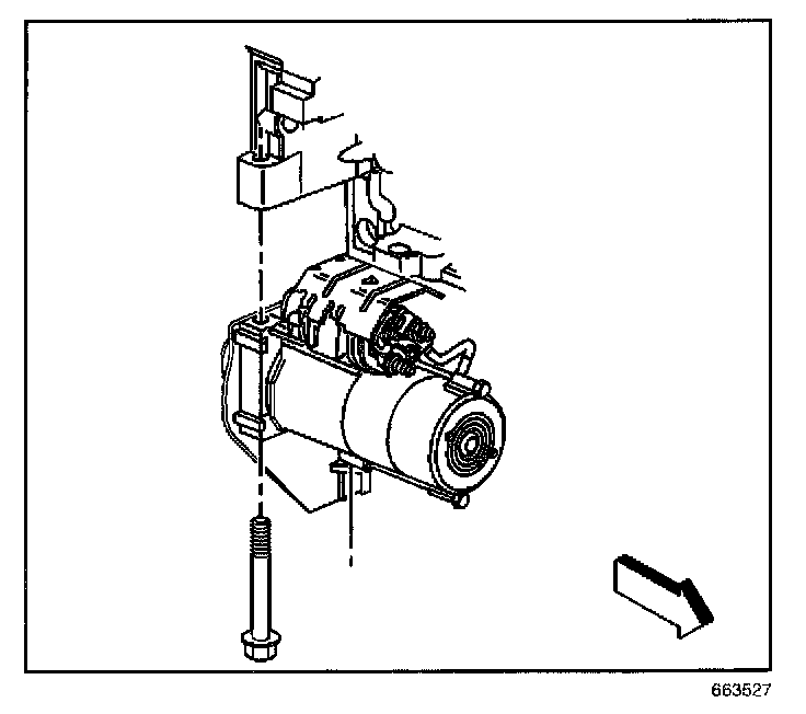 7. Slide the starter forward until the starter clears the transmission.