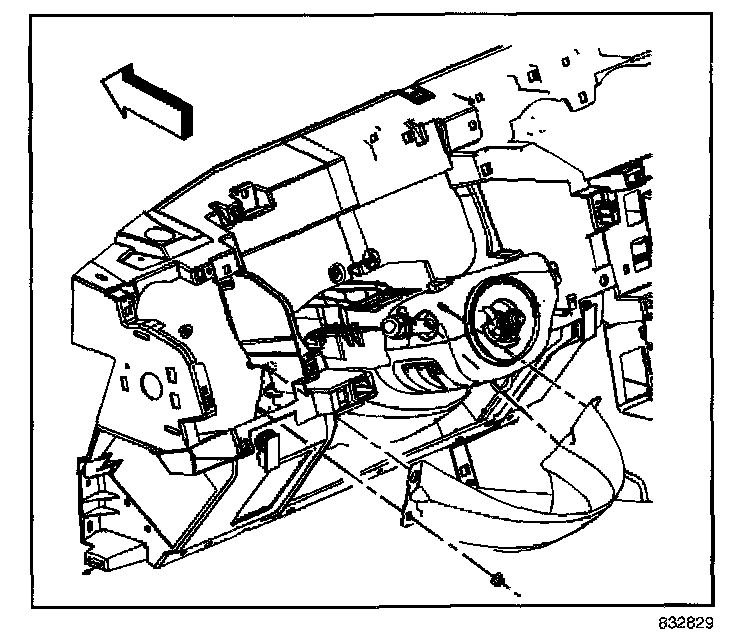 1. Loosen and move center console reward for access to the knee bolster bolt. Refer to Console Replacement.
