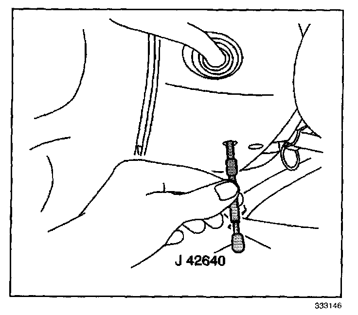 9. Unlock the steering column by removing J 42640 from the lower trim cover access hole.