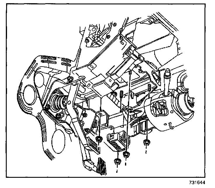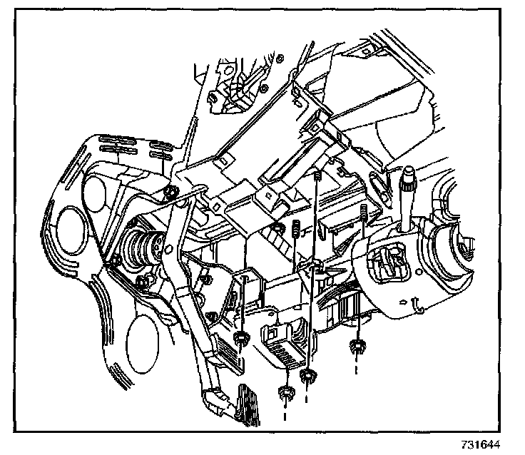 9. Remove the steering column mounting nuts.