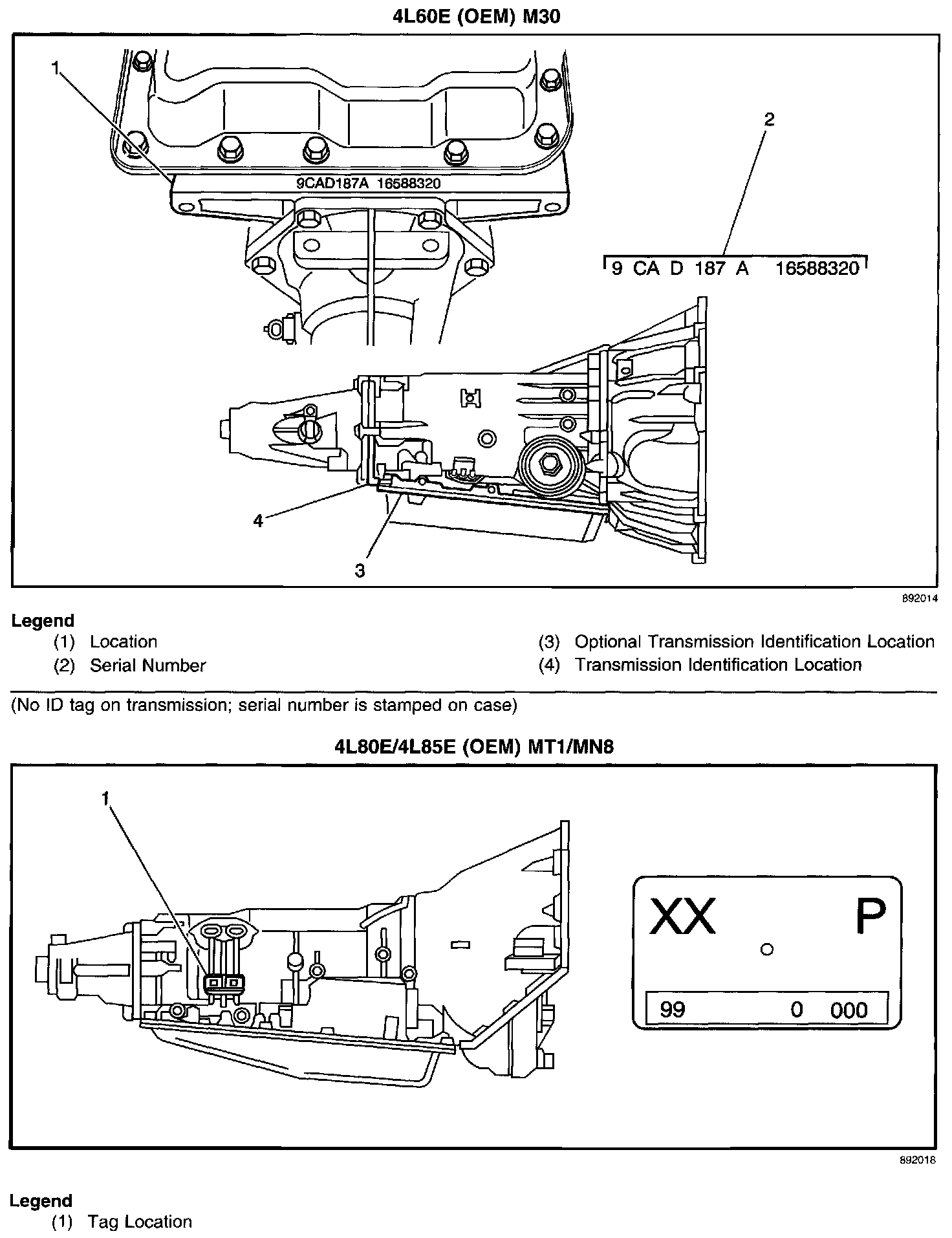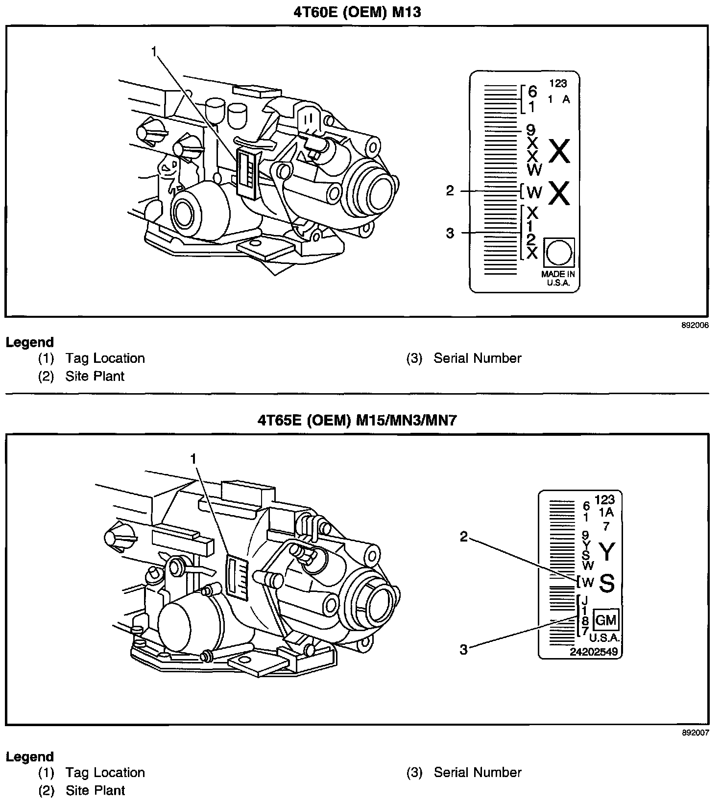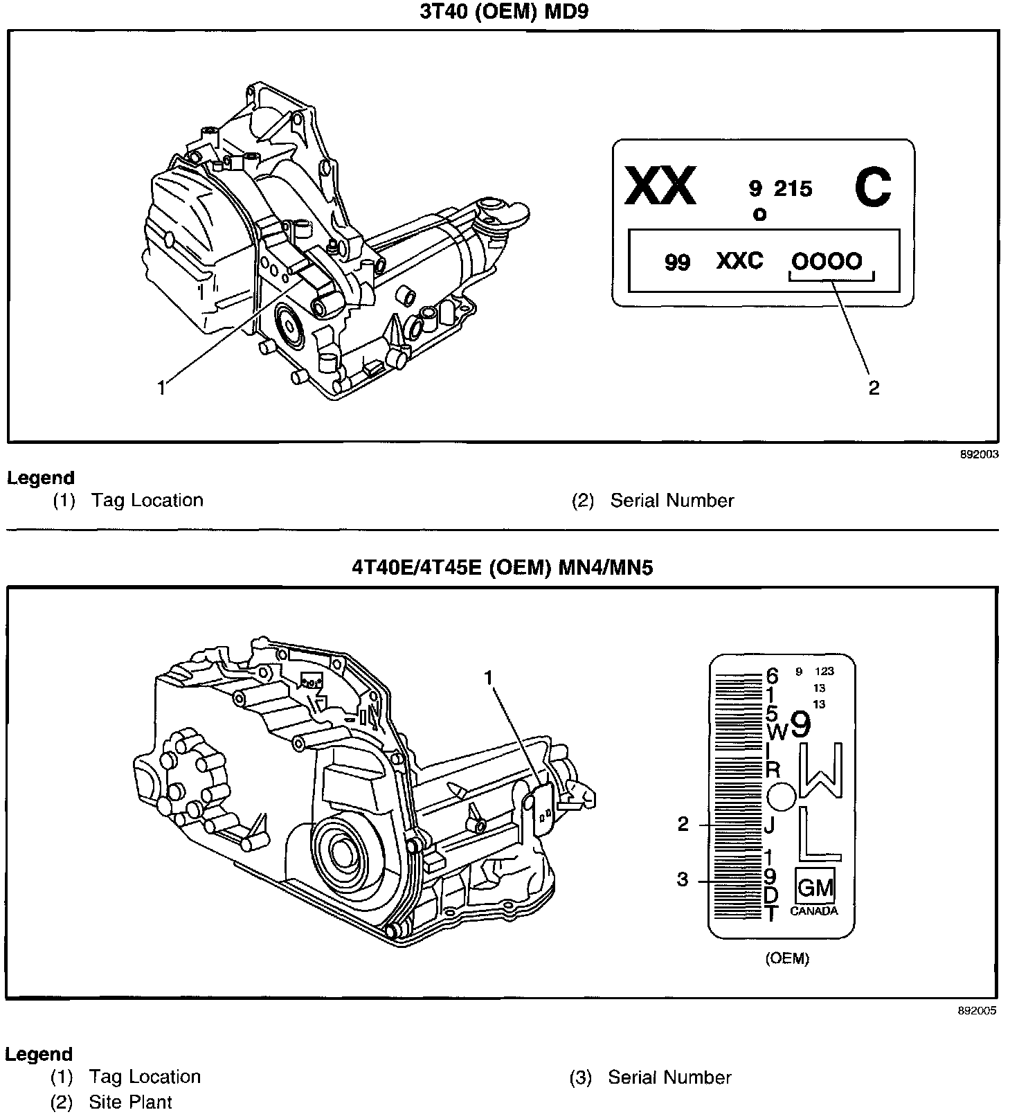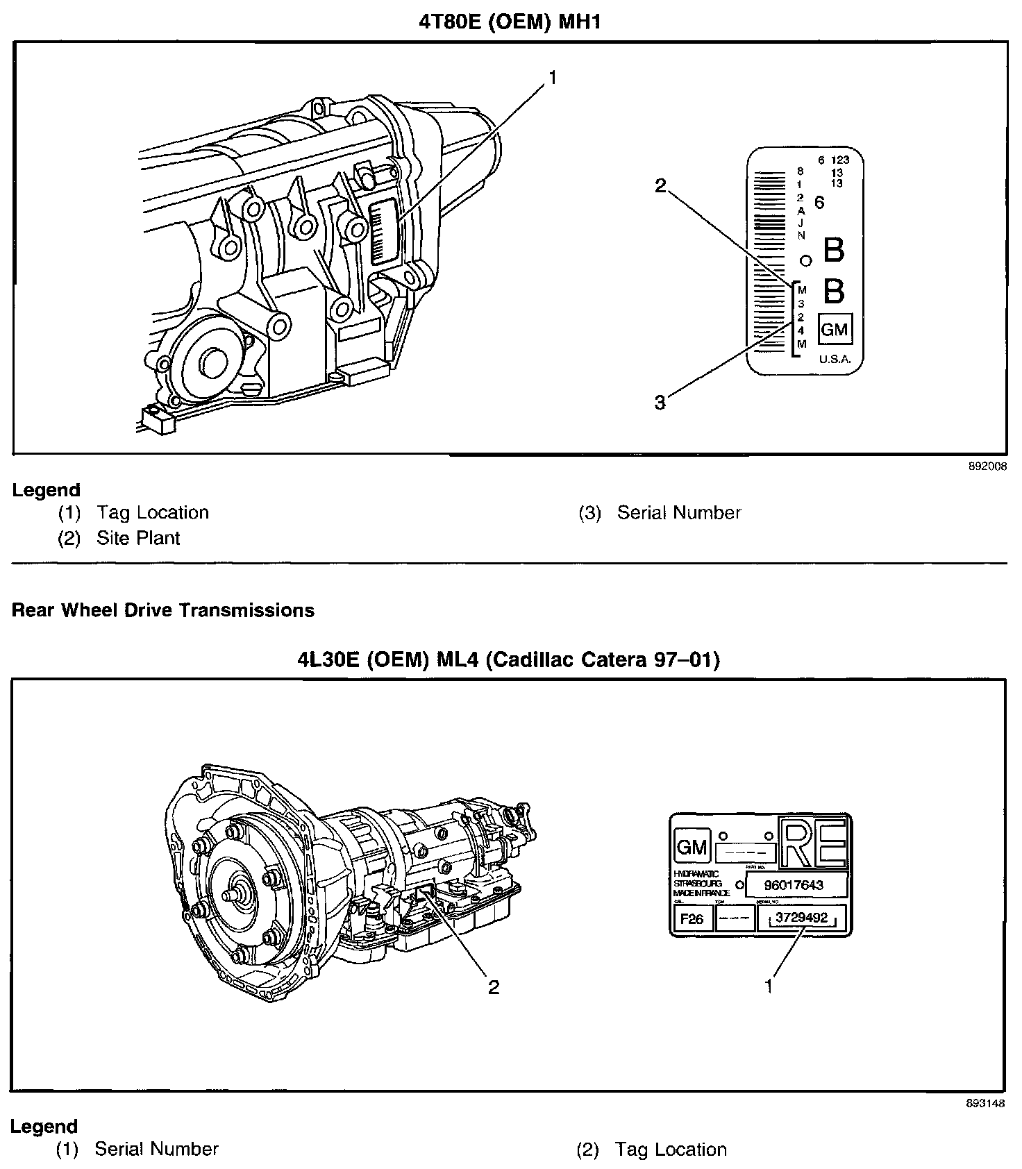 The Allison(R) built transmissions, as well as the 4L30E (Catera) and 5L40 (CTS) do not have green REMAN tags. Refer to the appropriate section in this bulletin for each of these transmissions' correct OEM and REMAN serial numbers.