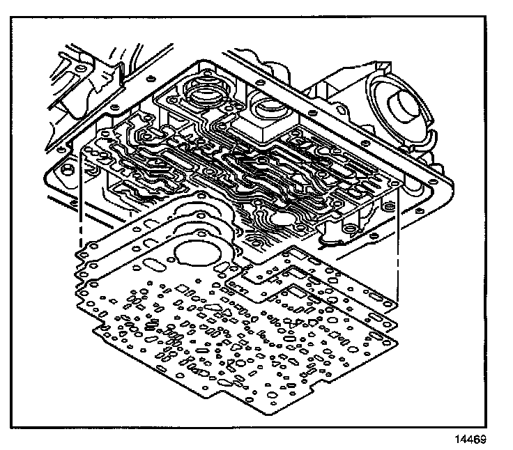 13. Remove the spacer plate to valve body gasket, the spacer plate and the spacer plate to transmission case gasket.