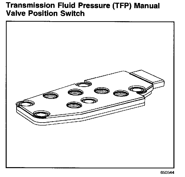The transmission fluid pressure (TFP) manual valve position switch consists of five pressure switches (two normally-closed and three normally-open) on the control valve body that sense whether fluid pressure is present in five different valve body passages. The combination of switches that are open and closed is used by the PCM in order to determine the actual manual valve position. The TFP manual valve position switch, however, cannot distinguish between PARK and NEUTRAL because the monitored valve body pressures are identical in both cases.