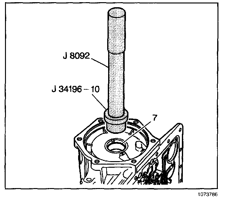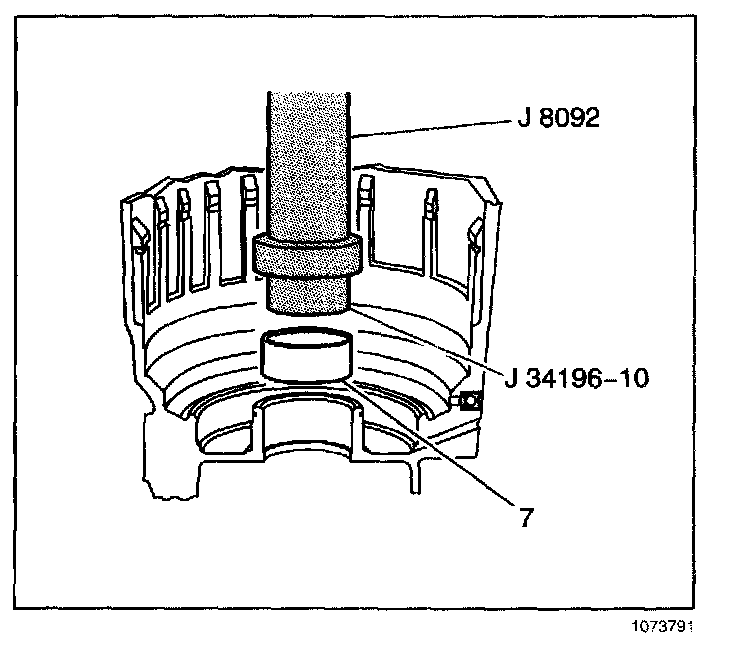 Install a case bushing (7) using J 8092 and J 34196-10 which is part of kit J 34196-B.