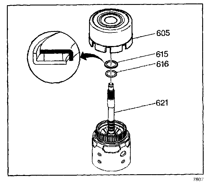 REVERSE INPUT AND INPUT CLUTCHES INSTALLATION1. Install the selective thrust washer (616) on the input housing (621).