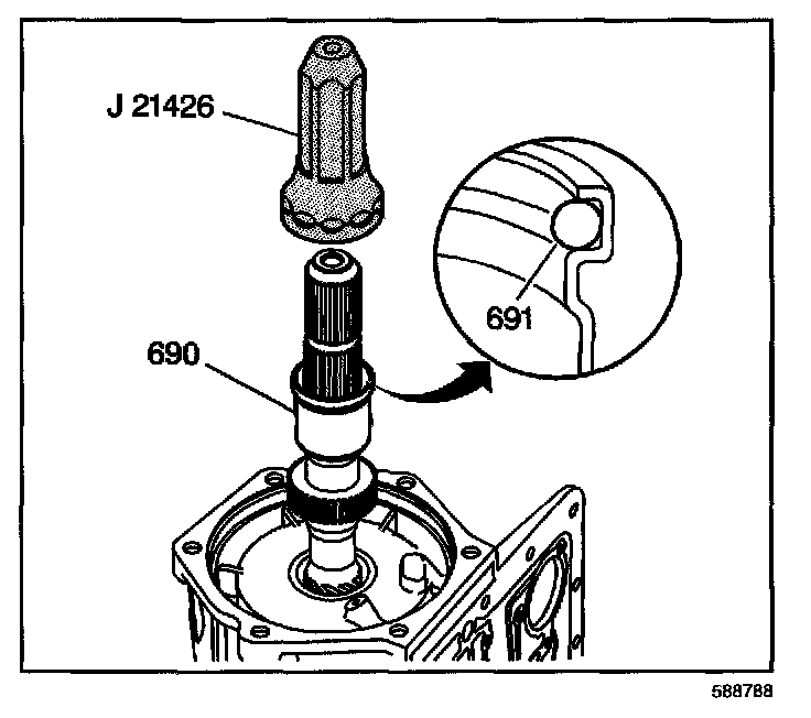 1. Using the J 21426, install an output shaft sleeve (690) and an output shaft seal (691).