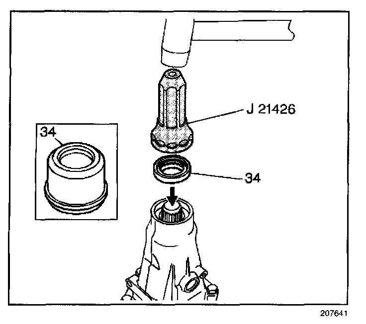 8. Using the J 21426, install the case extension oil seal assembly (34) (model dependent).