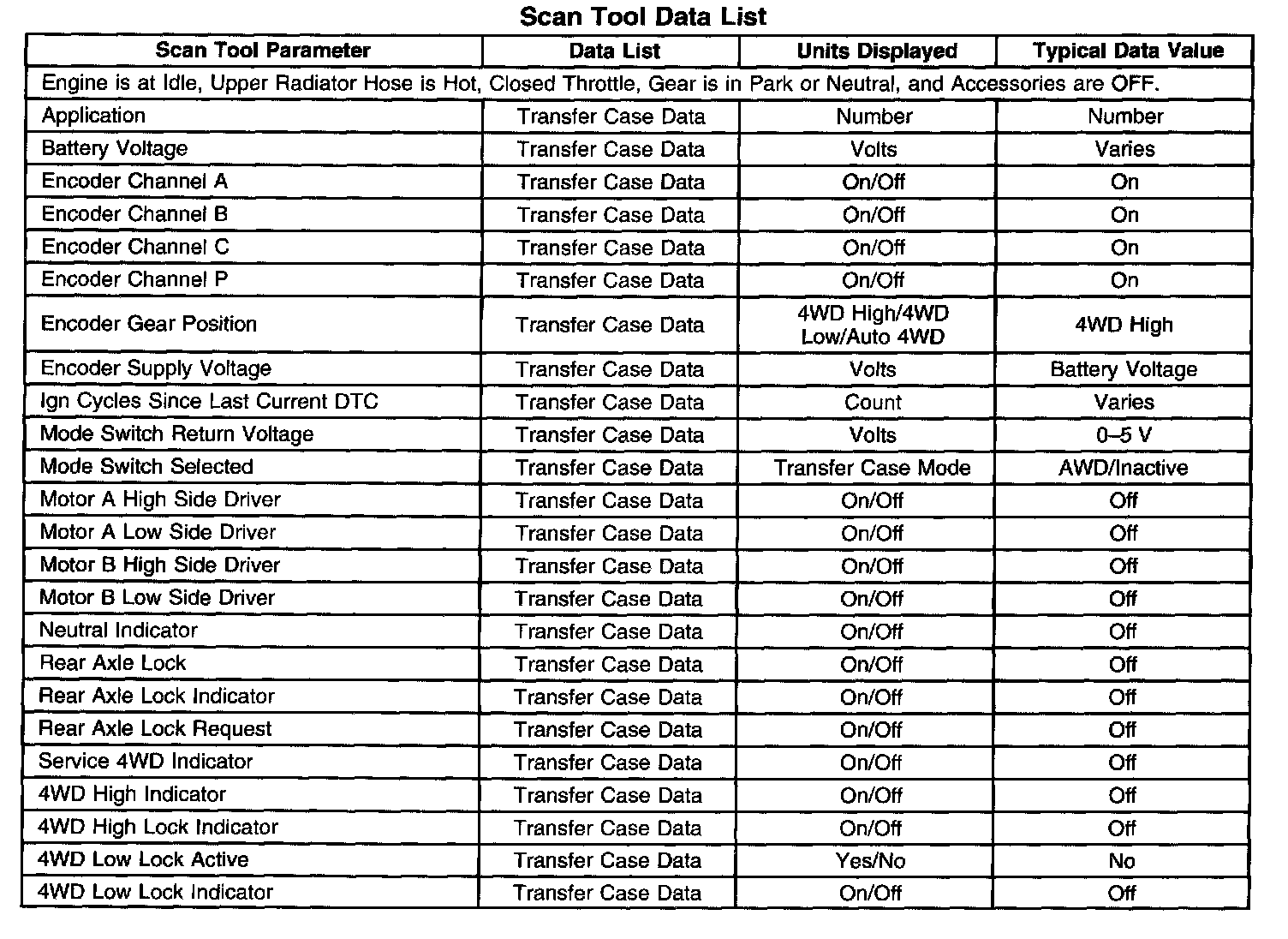 Scan Tool Data List: