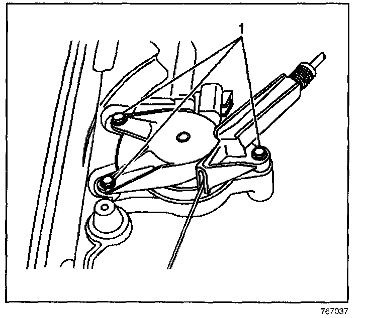 2. Install the 3 fasteners (1) retaining the window motor to the window module.