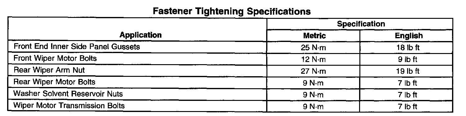 Wiper and Washer Systems: Specifications